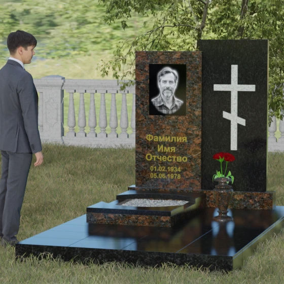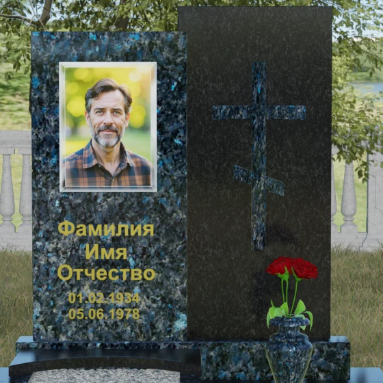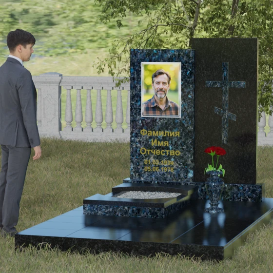 Кому подойдет: Эта модель является универсальным решением для тех, кто ищет баланс между традициями и современным дизайном. В строгом контрастном исполнении (черный и белый гранит) мемориал станет достойным памятником отцу, мужу, брату или дедушке, подчеркивая их мужество и твердость. При выборе более мягких оттенков, таких как мрамор Тассо или гранит Блю Перл, композиция приобретает нежность и светлую грусть, идеально подходя для оформления захоронения матери, жены или дочери. Это выбор людей, стремящихся выразить свою глубокую скорбь через благородную эстетику камня, которая останется неизменной для многих поколений потомков.