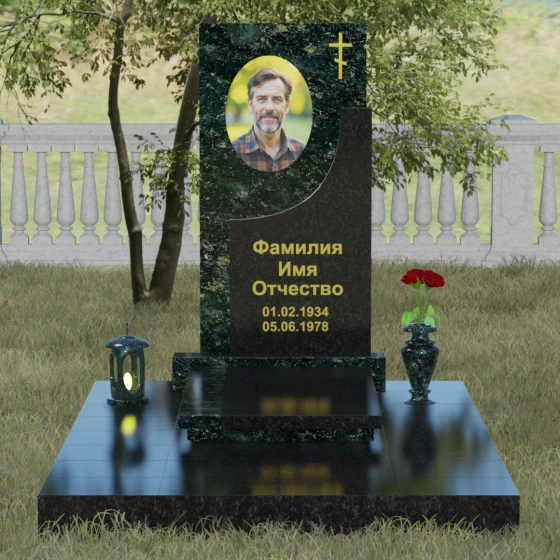 Модель Артикул 024 представляет собой законченное архитектурное решение. Стела установлена на массивный гранитный цоколь, который служит надежным фундаментом и придает всей конструкции необходимую устойчивость. Важной особенностью данного проекта является полное мощение участка: вместо открытого грунта используется сплошная надгробная плита. Это не только создает эстетически безупречный, аккуратный вид, но и значительно упрощает уход за местом захоронения, избавляя от необходимости борьбы с сорняками. В едином стиле с основным монументом выполнены дополнительные элементы декора: изящная каменная ваза, установленная на плите, позволяет приносить живые цветы, сохраняя гармонию композиции. Каменный бордюр по периметру участка четко очерчивает границы мемориала, превращая его в уединенное место для тихой молитвы и воспоминаний.