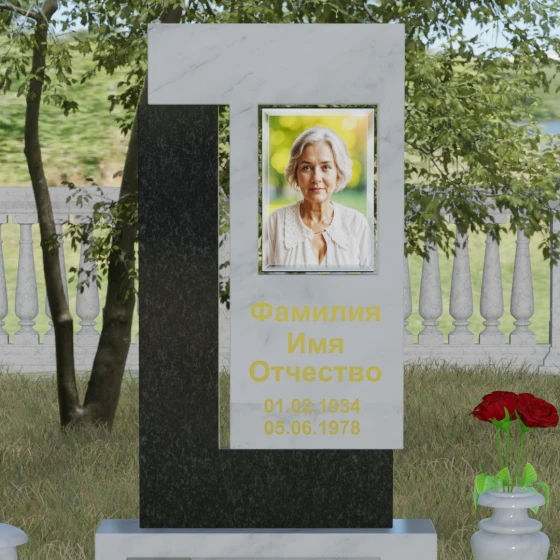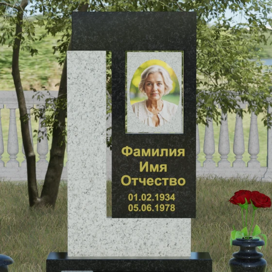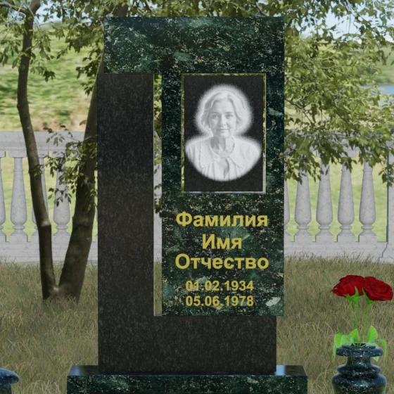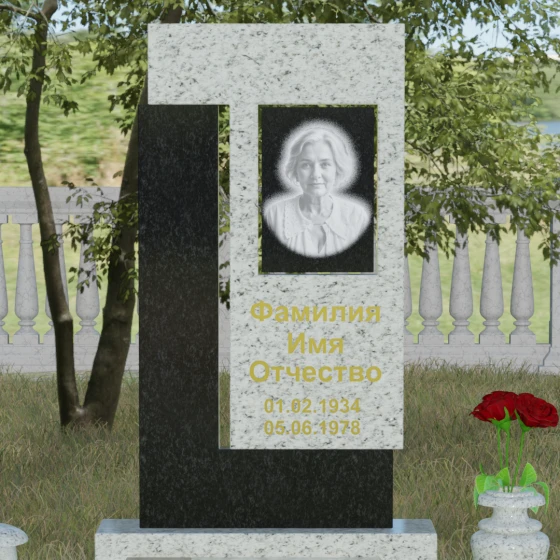 Архитектурное решение стелы предусматривает выделенную зону для портрета, которая может быть оформлена как в виде классической фотокерамики в овальной нише, так и методом художественной лазерной гравировки. Золоченая или вырубленная в камне надпись располагается на контрастном фоне, что обеспечивает отличную читаемость даже на расстоянии. Мы предлагаем этот проект в 8 уникальных цветовых исполнениях, что позволяет наделить мемориал индивидуальным характером. Вы можете выбрать глубокий черный гранит Габбро-диабаз, благородный серо-белый Мансуровский гранит, насыщенный красный Лезниковский, строгий Дымовский, изысканный Блю Перл с его синими искрами, текстурный Амфиболит, зеленый Балтик Грин или белоснежный мрамор Тассо.