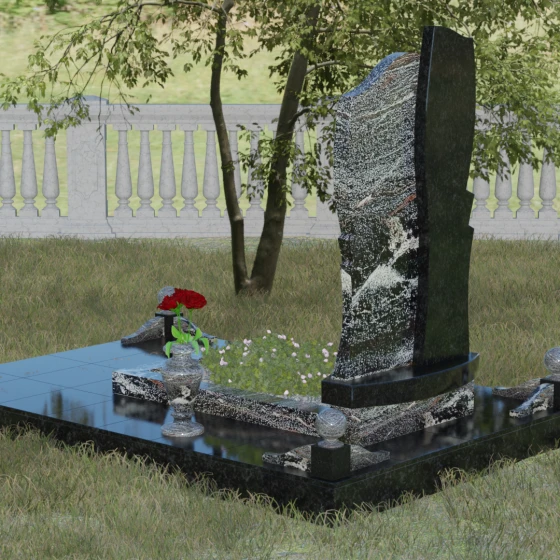 Особого внимания заслуживает игра фактур. Лицевая поверхность камня доведена до зеркального блеска методом многоступенчатой алмазной полировки — в ней отражается небо, создавая ощущение глубины и покоя. В то же время боковые грани могут иметь как гладкую обработку, так и декоративные сколы, подчеркивающие естественное, "дикое" происхождение материала. Контраст между глубоким черным цветом основного поля и богатой текстурой цветного гранита (будь то насыщенный красный, изумрудный зеленый или благородный серый) позволяет акцентировать внимание на портрете и памятных надписях, выполненных сусальным золотом или глубокой гравировкой.