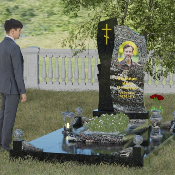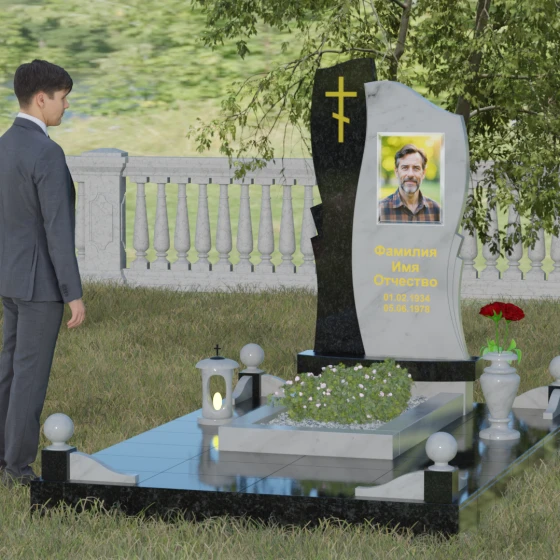Кому подойдет: Данная модель является универсальным и при этом глубоко индивидуальным решением. Благодаря возможности комбинирования камней, она идеально подходит как для оформления мужского захоронения (в строгих темных тонах с четкими линиями), так и для женского (при выборе более светлых оттенков камня и акценте на плавную волну стелы). Наличие православного креста делает её приоритетным выбором для верующих людей, подчеркивая их принадлежность к христианской традиции и надежду на вечную жизнь. Этот мемориальный комплекс станет достойным воплощением вашей любви и бесконечного уважения к ушедшему родителю, супругу или близкому другу, сохраняя их светлый образ для будущих поколений.