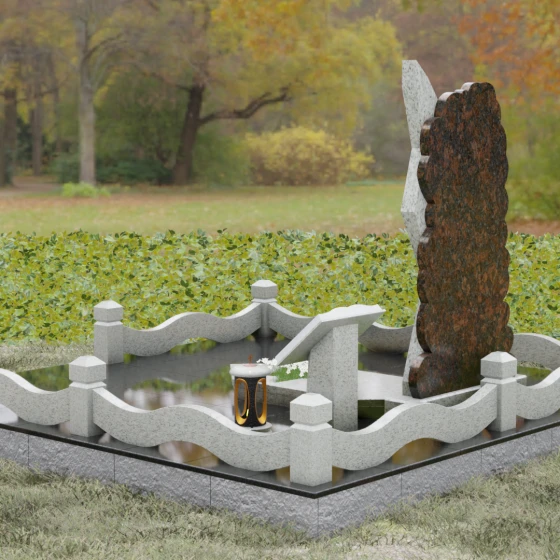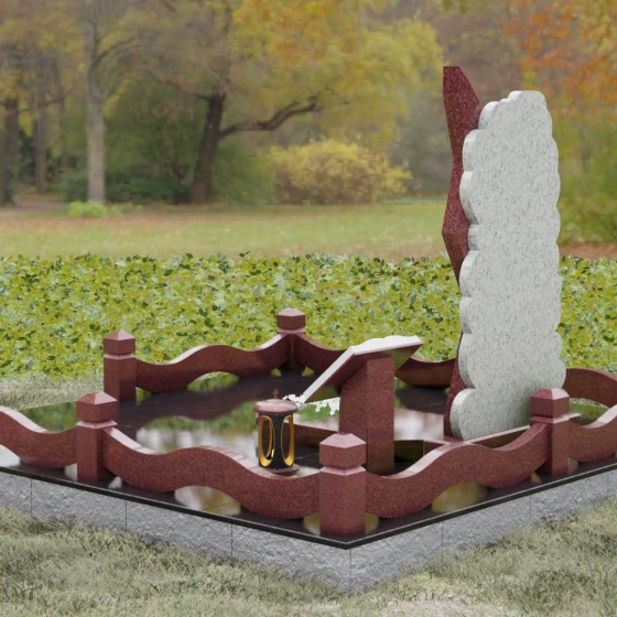 Каждая деталь этого ансамбля наполнена глубоким смыслом. Асимметрия и сочетание двух видов камня символизируют единство земного и небесного путей, светлых и темных страниц человеческой судьбы. Ступенчатый край напоминает лестницу, ведущую вверх, — символ духовного восхождения. В правой части комплекса установлена изящная каменная подставка с раскрытой книгой — это символ завершенной жизненной повести, мудрости и памяти, которая останется доступной близким.