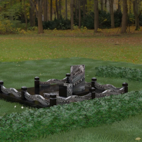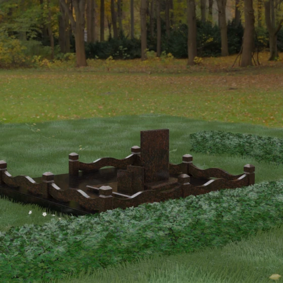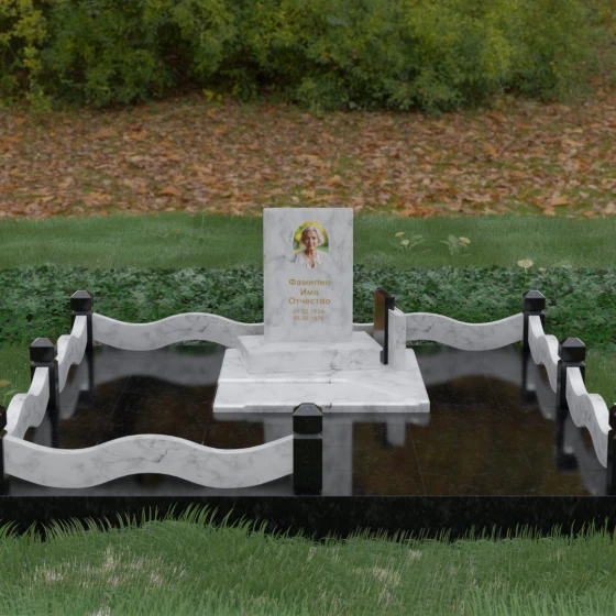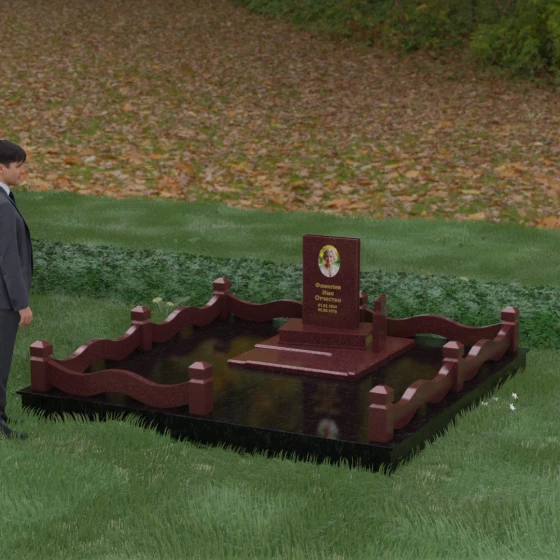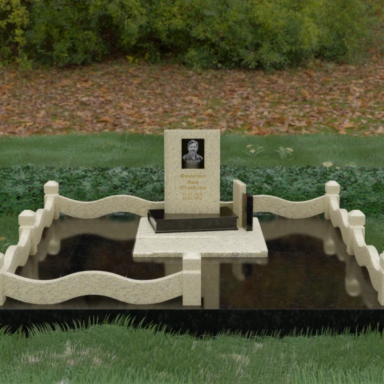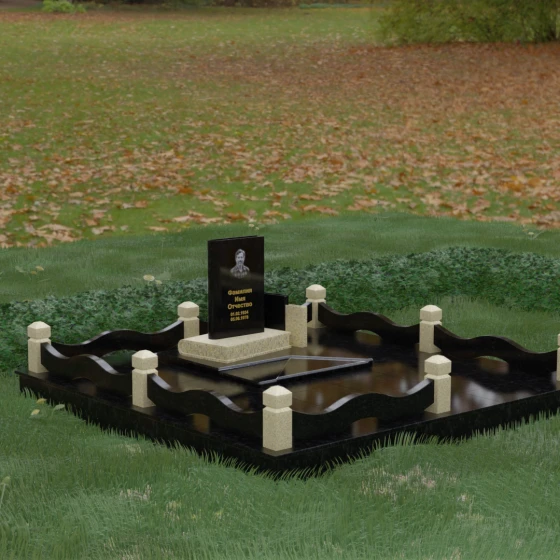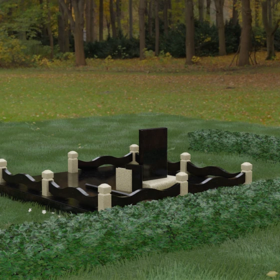 Кому подойдет: Данная модель является универсальным решением для тех, кто ищет комплексный подход к оформлению захоронения. Строгие линии центрального блока позволяют установить его как мужчине, так и женщине, подчеркивая статус и уважение к личности. Благодаря наличию полноразмерного фундамента и ограждения, этот вариант идеален для семей, которые хотят один раз и навсегда благоустроить участок, обеспечив ему достойный вид без необходимости регулярного сложного обслуживания. Это выбор в пользу вечности, массивности и архитектурного совершенства.