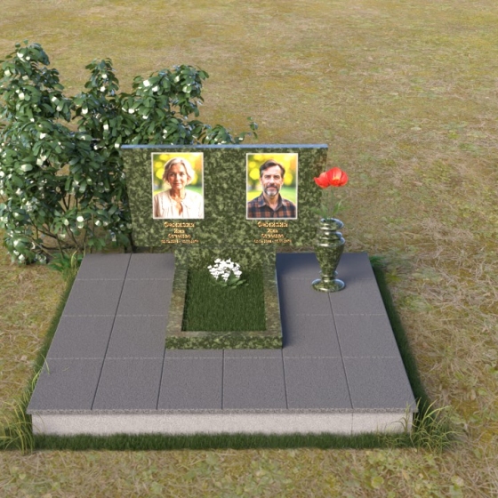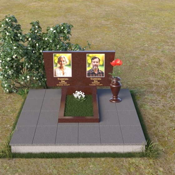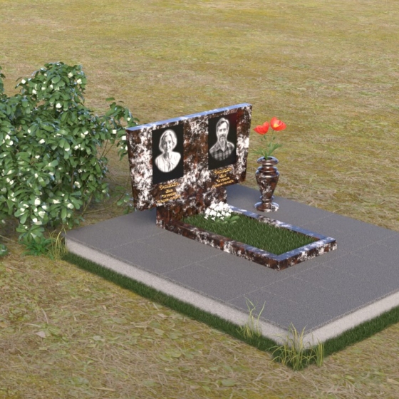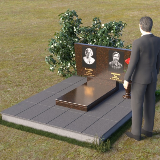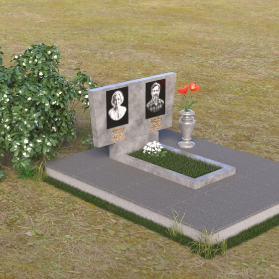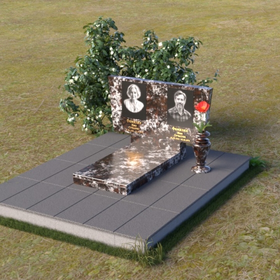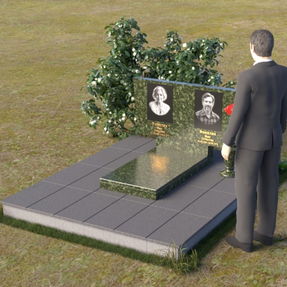 Асимметричная форма стелы не случайна. Она символизирует жизненный путь, который не всегда бывает прямым и предсказуемым. Скошенный угол, напоминающий крыло, несет в себе идею защиты и утешения, а также веру в загробную жизнь. Зеркальная полировка, в свою очередь, отражает свет и символизирует чистоту души и вечную память. Горизонтальная плита, расположенная под стелой, олицетворяет землю, на которой покоится прах усопших, и одновременно служит связующим звеном между земным и небесным мирами. Общий вид памятника создает ощущение покоя и умиротворения, приглашая к тихой молитве и воспоминаниям.