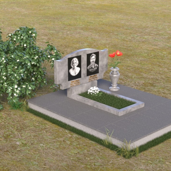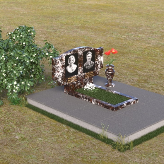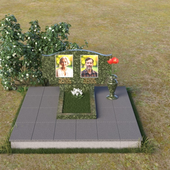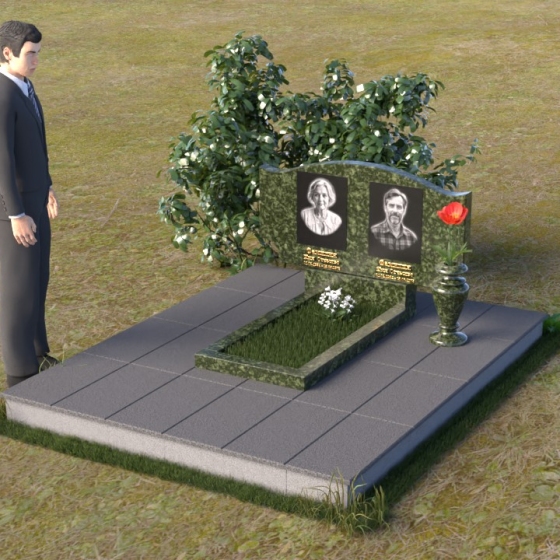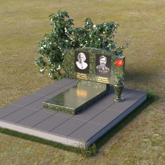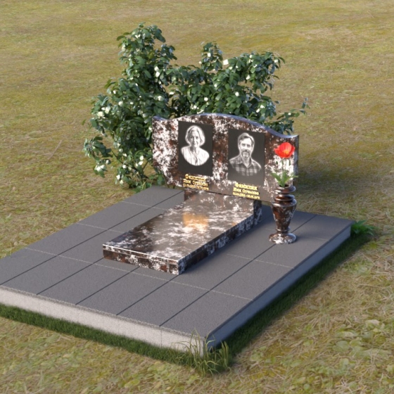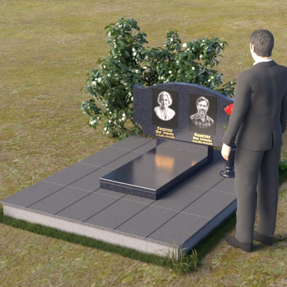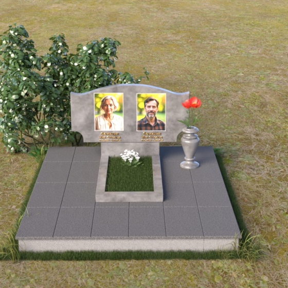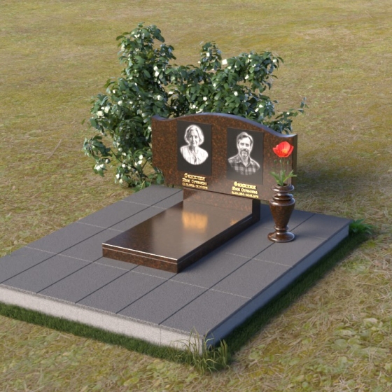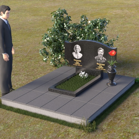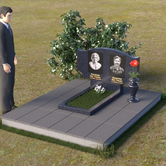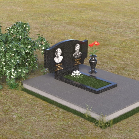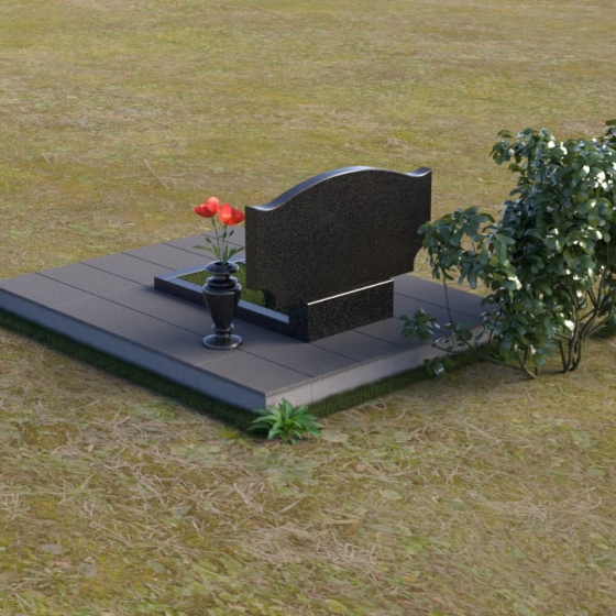 Этот гранитный монумент привлекает внимание своей плавной, обтекаемой формой. Верхняя часть надгробного сооружения представляет собой дугу с легким изгибом, напоминающим колыбель или волну, бережно укрывающую покой. Боковые грани скруглены, что придает памятнику мягкость и умиротворенность. Фаска, аккуратно снятая по периметру, подчеркивает четкость линий и добавляет изделию изысканности. Нижняя часть монумента выполнена в форме прямоугольника, создавая устойчивое основание и визуальный баланс. Дополнительная горизонтальная плита, расположенная на основании, добавляет композиции завершенность и предоставляет место для нанесения эпитафий или размещения цветов.