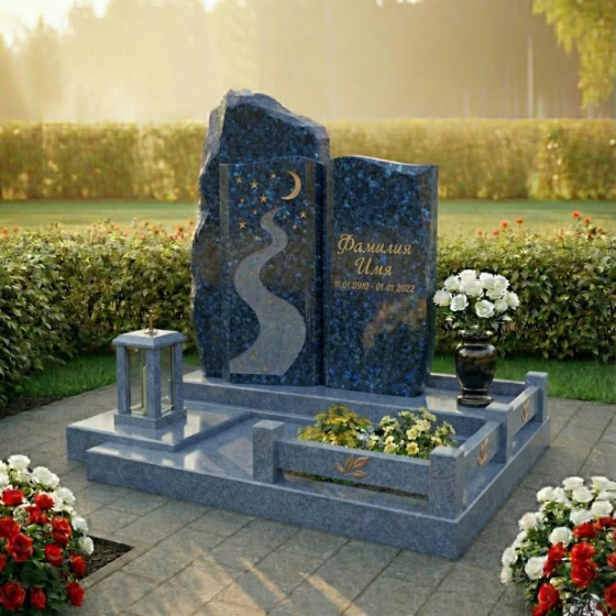 Кому подойдет: Надгробие ПН 196 идеально подойдет для тех, кто ищет монумент, сочетающий в себе классическую строгость и глубокий символизм. Это выбор для семей, желающих увековечить память о близком человеке с достоинством и изяществом. Композиция из двух стел, одна из которых символизирует вечность и космос, а другая — индивидуальность и жизненный путь, позволяет тонко передать многогранность ушедшей души. Благодаря возможности выбора из 8 цветовых решений (7 видов гранита и 1 вид мрамора: гранит амфиболит, гранит Балтик грин, гранит Блю Перл, гранит Габбро-диабаз, гранит Дымовский, гранит Лезниковский, гранит Мансуровский, мрамор Тассо) вы сможете подобрать камень, который наилучшим образом отразит характер и индивидуальность усопшего. От глубокого черного габбро-диабаза, символизирующего величие и покой, до светлого мансуровского гранита, олицетворяющего чистоту и светлую память, или даже изысканного мрамора Тассо – каждый материал добавит свои нюансы в общую композицию, делая её по-настоящему уникальной и личной.