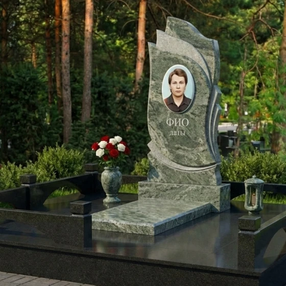 Уникальная форма стелы предоставляет широкие возможности для индивидуального оформления. Портрет усопшего, выполненный методом гравировки или фотокерамики, будет гармонично смотреться в центральной, слегка утопленной части стелы, словно в рамке. Эта конфигурация позволяет максимально выделить изображение, сделав его центром всей композиции. Ниже портрета остается достаточно места для нанесения ФИО и дат жизни, которые будут выглядеть лаконично и читабельно благодаря своей контрастности на идеально отполированной черной поверхности. Мы предлагаем эту мемориальную композицию в 8 цветовых решениях, что позволяет подобрать камень, который наилучшим образом отразит характер и индивидуальность усопшего. Вы можете выбрать один из 7 видов гранита: благородный амфиболит, глубокий Балтик грин, сияющий Блю Перл, классический Габбро-диабаз, теплый Дымовский, насыщенный Лезниковский или светлый Мансуровский. Для ценителей особой эстетики доступен также изысканный мрамор Тассо. Каждый из этих камней обладает своим уникальным рисунком и оттенком, позволяя создать по-настоящему персонализированную композицию.