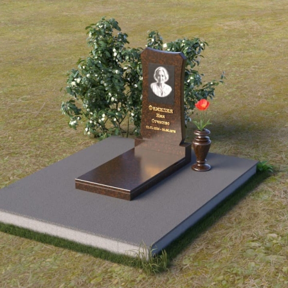 Форма стелы ПВ 020 идеально подходит для размещения портрета усопшего. Благодаря скругленным линиям и отсутствию острых углов, изображение будет выглядеть гармонично и естественно. Портрет может быть выполнен в виде гравировки или фотокерамики. Золотое тиснение имени, отчества и дат жизни на темном фоне гранита выглядит особенно торжественно и благородно, привлекая взгляд и подчеркивая важность информации. Для того, чтобы добавить индивидуальности, можно дополнить композицию вазой для цветов, выполненной в том же стиле, что и сам памятник. Ваза из гранита или мрамора не только украсит место захоронения, но и станет символом вашей заботы и любви. Расположение вазы рядом со стелой позволит создать завершенную и гармоничную композицию, подчеркивающую красоту и величие ритуального изделия.
