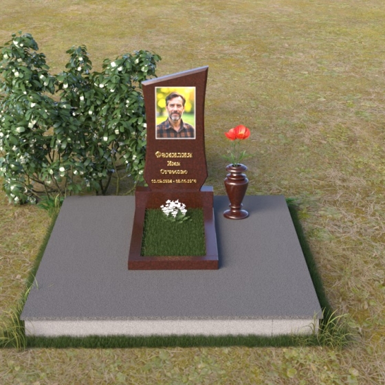 Форма стелы предоставляет широкие возможности для размещения портрета усопшего. Наиболее гармонично он будет смотреться в верхней части, где плавные линии создают естественную рамку. Ниже можно разместить имя, фамилию, отчество и даты жизни, выполненные изящным шрифтом. Дополнительно можно нанести эпитафию, выражающую ваши чувства и скорбь. Подставка под стелу имеет строгую прямоугольную форму, что создает ощущение устойчивости и незыблемости. Поверхность подставки может быть как полированной, так и матовой, в зависимости от ваших предпочтений. На подставке также можно разместить вазу для цветов, которая станет символом живой памяти и любви.