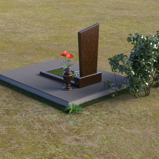 Геометрия модели продумана до мелочей. От основания, служащего надежным фундаментом, до изящно скошенного верха стелы – каждый элемент работает на создание целостного и гармоничного образа. Массивное основание плавно переходит в горизонтальную плиту, которая является своеобразным пьедесталом для вертикальной стелы. Скошенный верх стелы не только придает ей оригинальный вид, но и создает ощущение легкости и устремленности ввысь. Все элементы композиции объединены общей идеей – создать прочное и долговечное сооружение, которое будет достойным памятником ушедшему человеку.