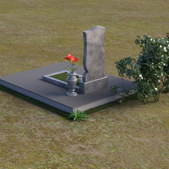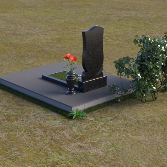Данная модель представляет собой изысканный монумент, где строгие линии гармонично сочетаются с плавными изгибами. Верхняя часть памятника имеет форму, напоминающую раскрытую книгу с мягко закругленными страницами. Боковые грани плавно переходят в основание, образуя элегантный силуэт. Завершает композицию прямоугольная подставка, на которую установлена дополнительная плита. Зеркальная полировка поверхностей создает эффект глубины и объема, отражая окружающий мир и словно устремляясь в бесконечность. Фаски, снятые по периметру монумента, подчеркивают его четкую геометрию и добавляют выразительности. На лицевой стороне размещен портрет усопшего и надпись, выполненная изящным шрифтом. В правой части композиции расположена небольшая ваза для цветов, выполненная в едином стиле с памятником.